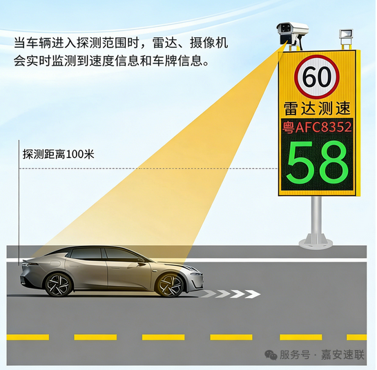 它不是一个冷冰冰的抓拍机器,而是一个有温度的“电子劝导员”——超速时,用醒目的红色告诉你“你已越界”;正常行驶时,用温和的绿色提醒你“保持安全”。它让每一次经过,都成为一次安全意识的强化。